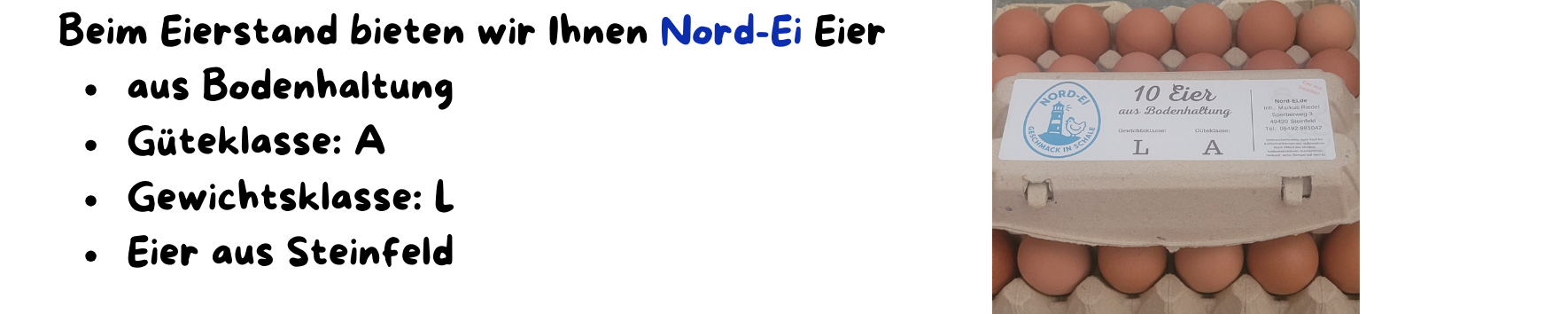!!! Während der Spargelzeit bieten wir Nord-Ei Eier auch beim Spargelhof-Dreyer in Damme an.